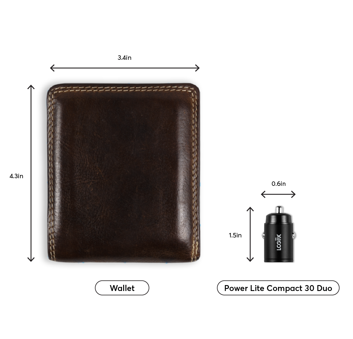 The LOGiiX Power Lite Compact 30 Duo fits into most standard 12V in-car plugs.