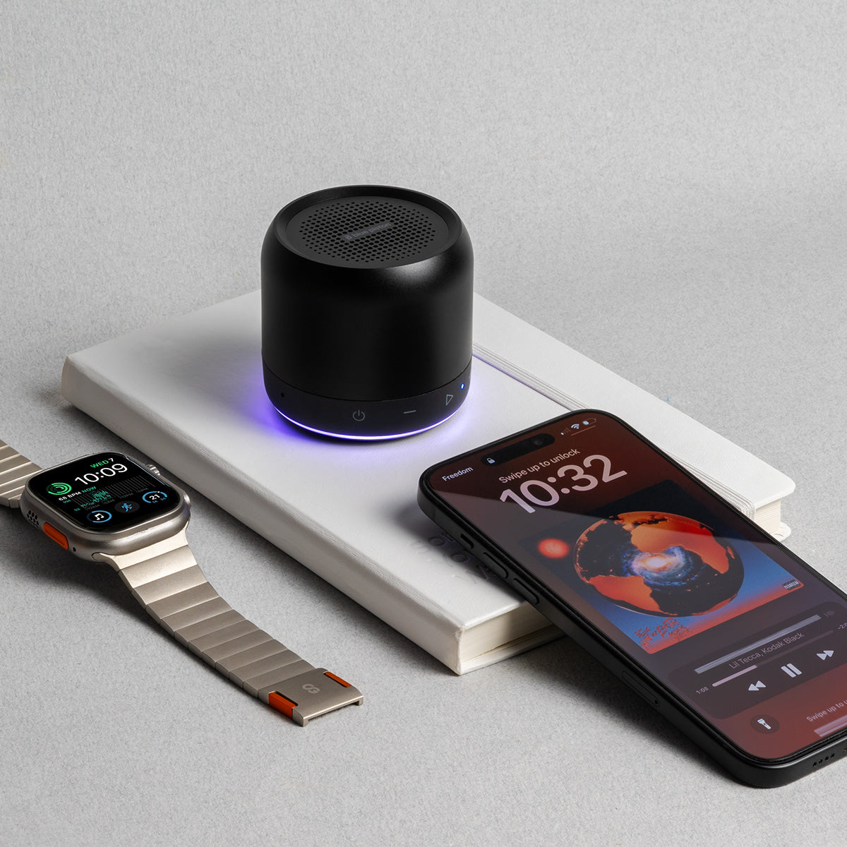 The built-in LED ring with up to 5 different light modes for a fun listening experience. Connect two Blue Piston Waves wirelessly to get a premium stereo like sound when you're on the go!