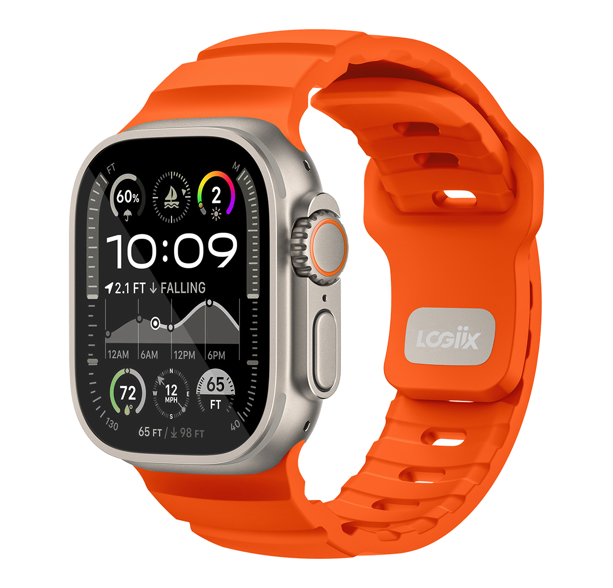 The LOGiiX Active Link is a durable, sporty watch strap made for Apple Watch users with active lifestyles. Crafted from premium FKM fluoroelastomer rubber, this strap offers 100% waterproof performance, making it perfect for workouts, outdoor adventures, and everyday wear.