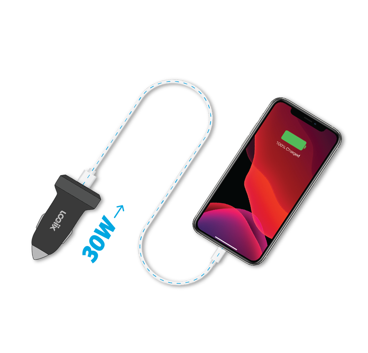 El LOGiiX Power Lite 30 Duo se adapta a la mayoría de los enchufes estándar de 12 V para automóviles.