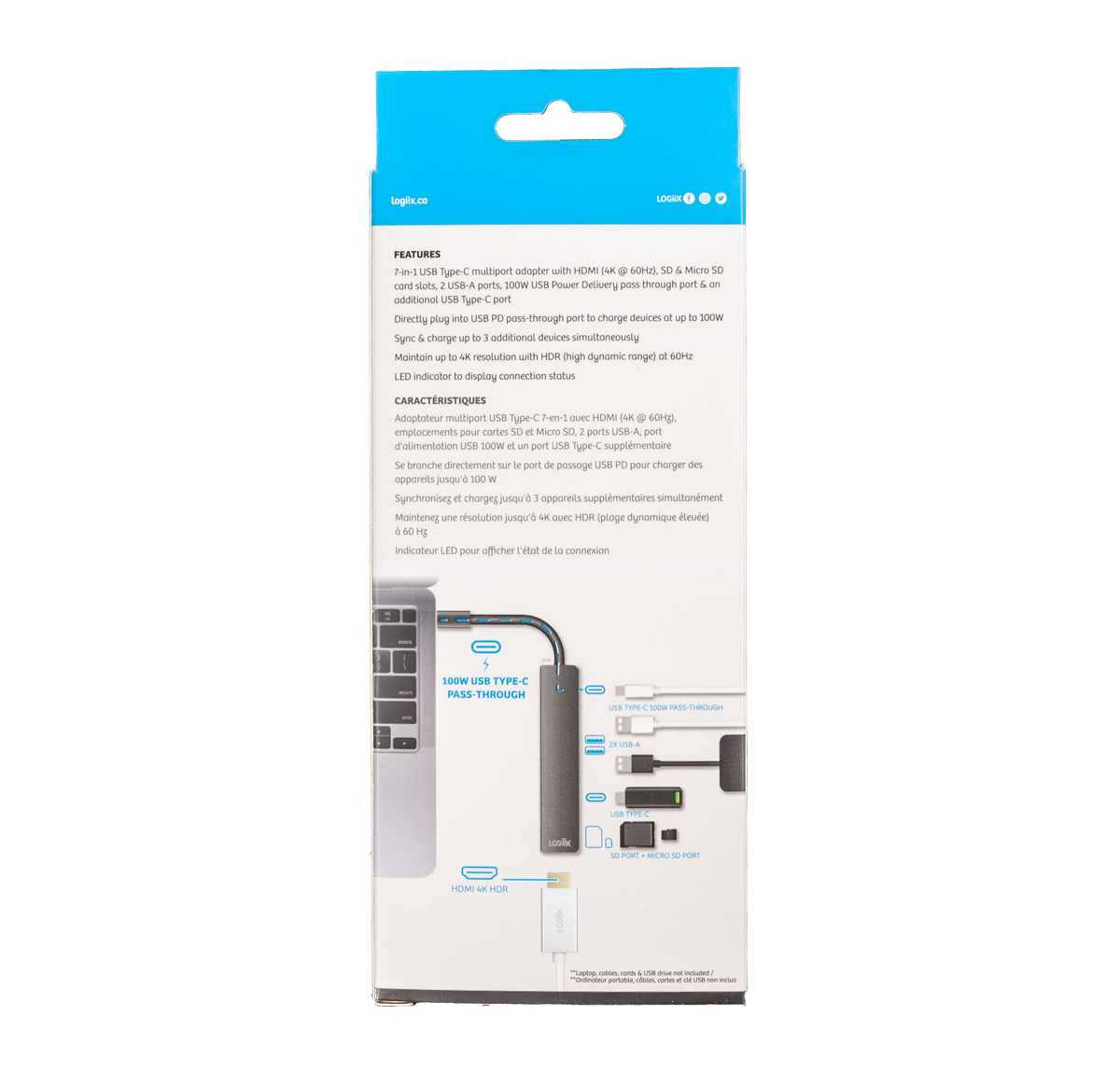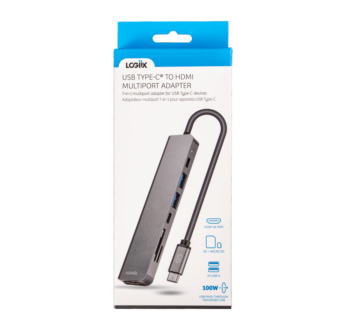El adaptador multipuerto USB Type-C a HDMI de LOGiiX cuenta con un único puerto HDMI (4K), 2 puertos USB-A, un único puerto USB Type-C Power Delivery con paso de 100 W y un puerto USB-C adicional , junto con puertos Micro SD y SD. Conecte su computadora a pantallas, televisores, proyectores y monitores HD mientras mantiene la resolución 4k, todo mientras sincroniza y carga teléfonos inteligentes, tabletas y otros dispositivos a través de los puertos USB-A o USB Type-C