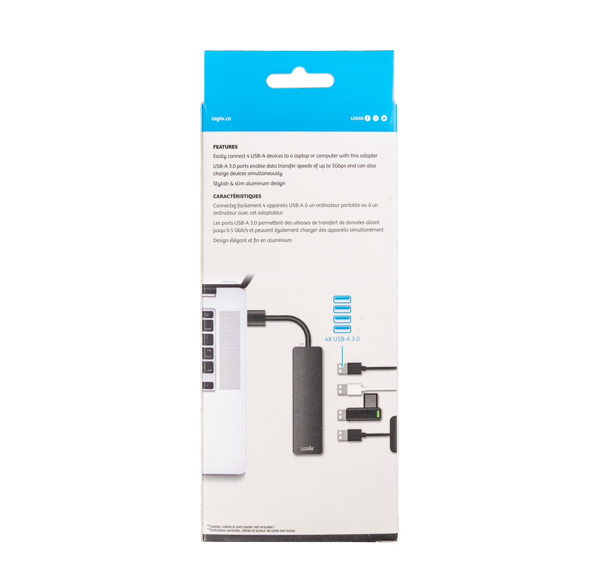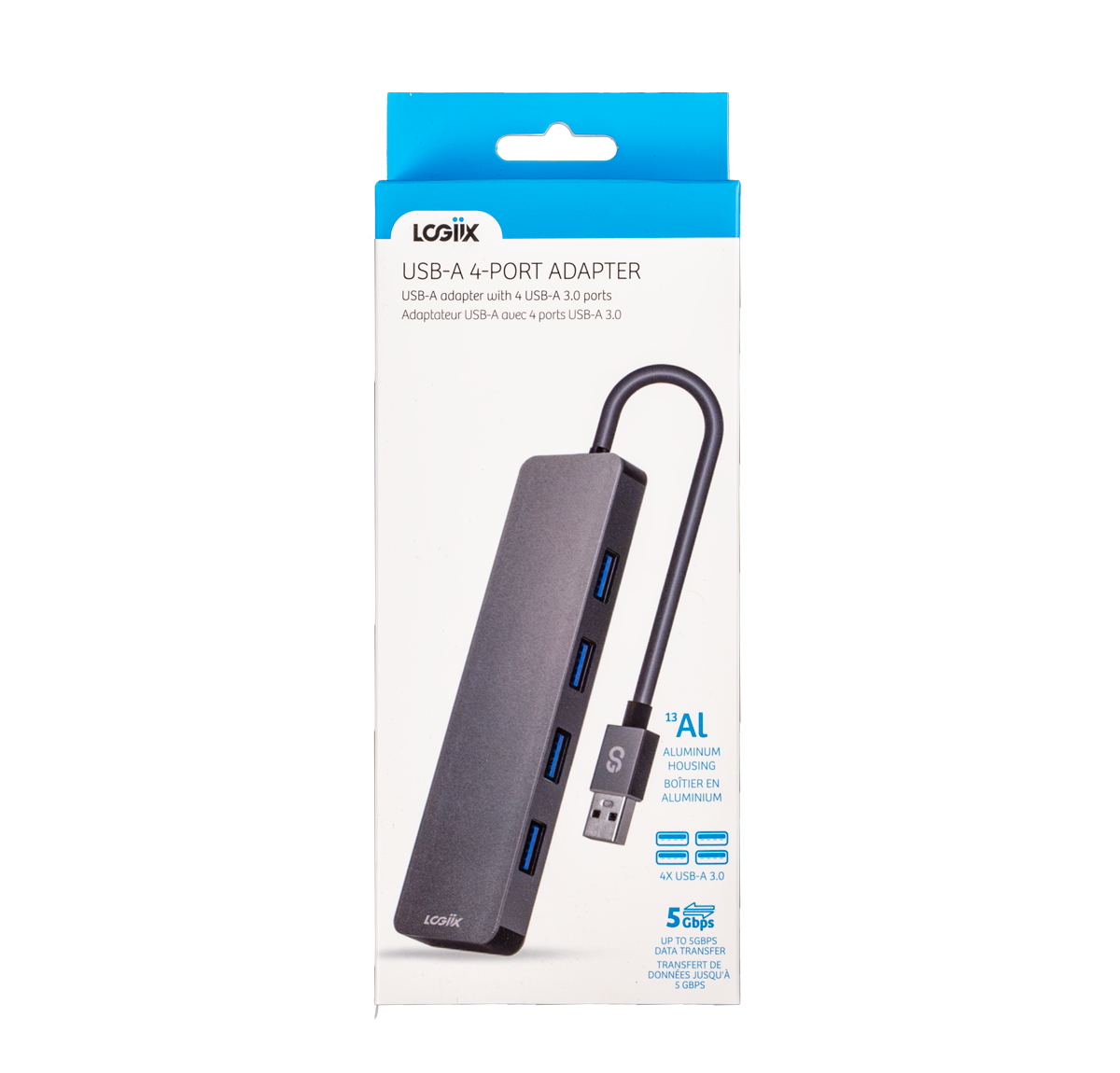 El delgado adaptador multipuerto LOGiiX USB-A a USB-A cuenta con 4 puertos USB-A 3.0 que le permiten cargar o sincronizar hasta 4 dispositivos simultáneamente. Los puertos USB-A 3.0 también son capaces de transferir datos a una velocidad de hasta 5 Gbps. Cargar hasta 4 dispositivos simultáneamente nunca ha sido tan fácil