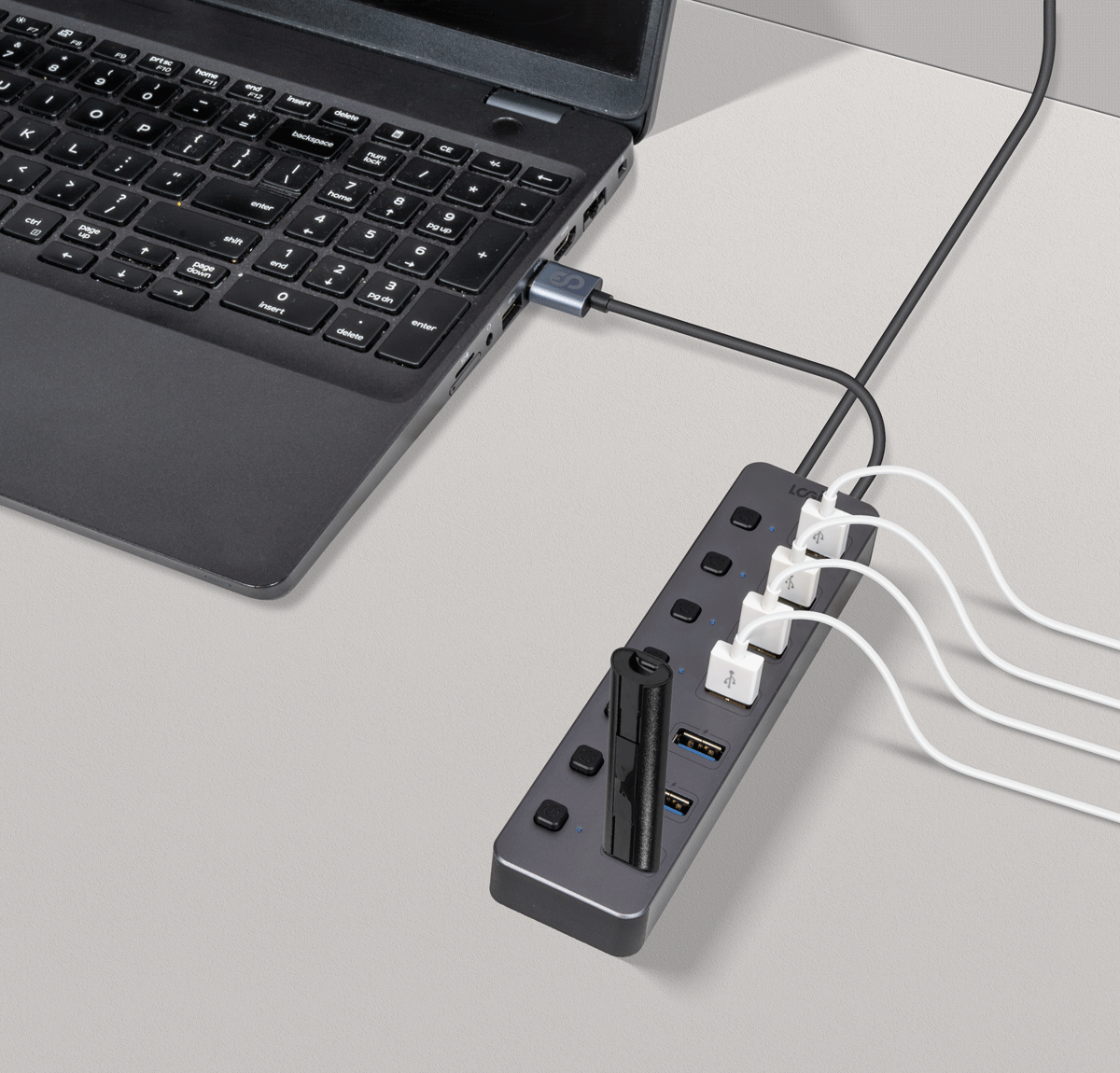 • 7-in-1 USB-A multiport hub is ideal for transferring data & charging up to 7 devices