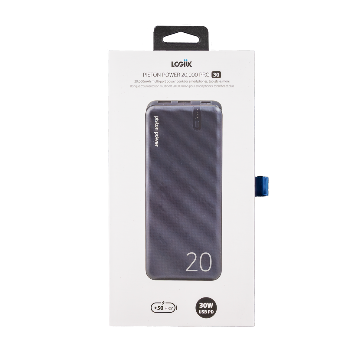 The LOGiiX Piston Power 20,000 Pro 30W is a high capacity 20,000mAh portable power bank. This powerhouse features dual fast charging USB-A outputs and a single USB Type-C port. The 30W USB Power Delivery port can charge your smartphone up to 72% in just 45 minutes and is capable of charging tablets too. Get up to 50 additional hours of charge when you're on the go with this power bank.
