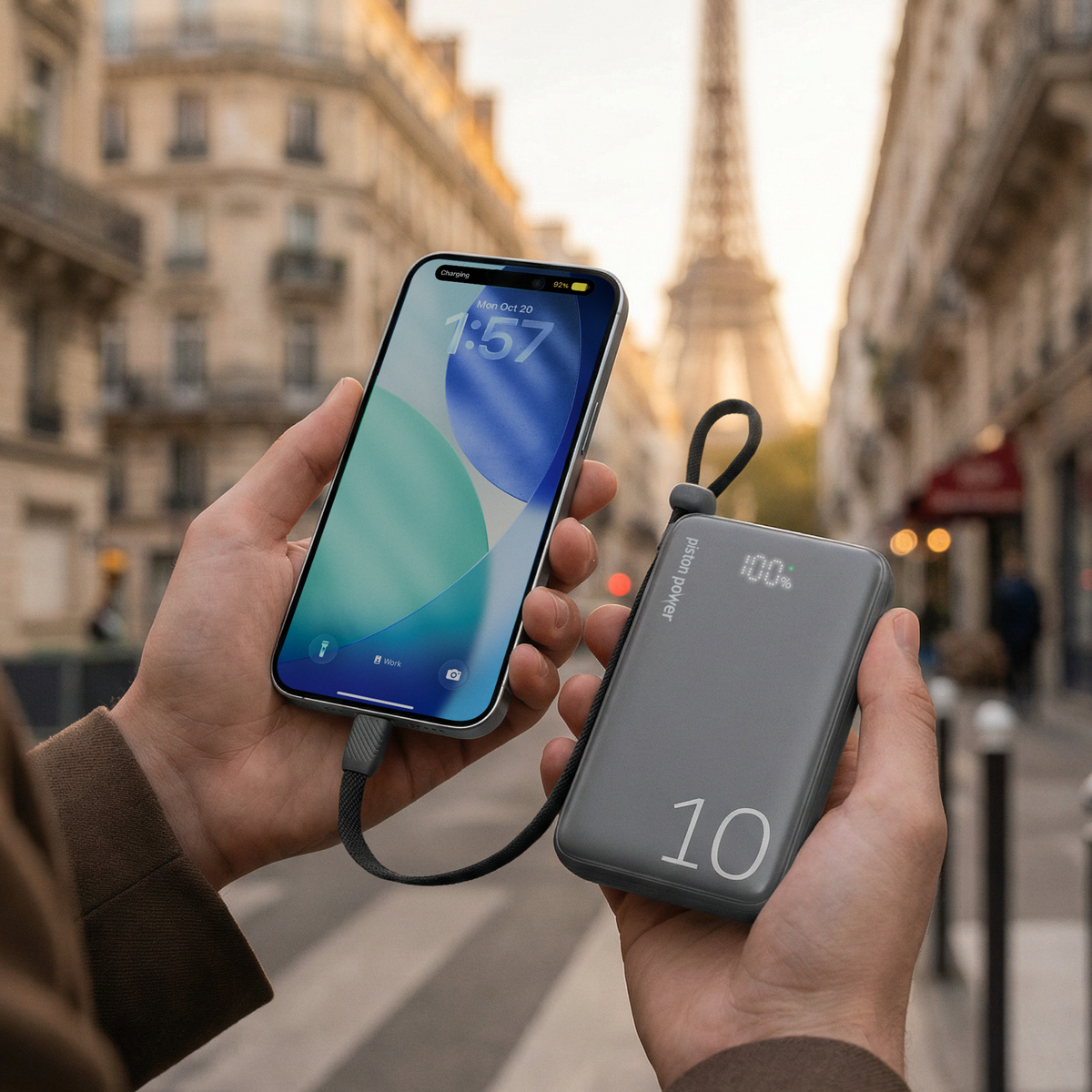 Keep charging simple with a power bank that has a built-in braided USB-C cable! Never struggle with forgetting your charging cable again! With 10,000mAh capacity, 20W Power Delivery, and dual outputs (USB-C + USB-A), it fast charges multiple devices in a slim, travel-ready design that delivers up to 25 hours of extra battery on the go.