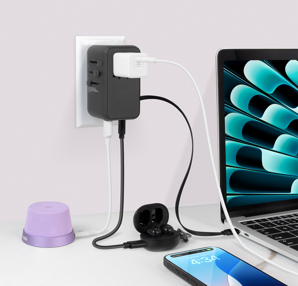The LOGiiX World Traveler XL 45W is the only universal adapter you’ll need for your journeys. Featuring 2 built-in USB Type-C Power Delivery ports (up to 45W) and 2 fast-charging USB-A ports, plus a retractable built-in USB-C cable with 45W fast charging capability, this compact powerhouse can charge up to 5 devices simultaneously. Designed for global use, this all-in-one unit provides plug adapter functionality in more than 150 countries.