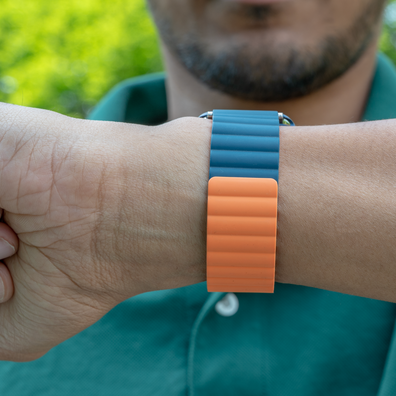 Say Hello 👋 to our premium magnetic watch straps for Apple Watch. These dual-coloured bands feature specially crafted reversible aluminum links that allow you to craft up to 4 different colour combinations for ultimate versatility.